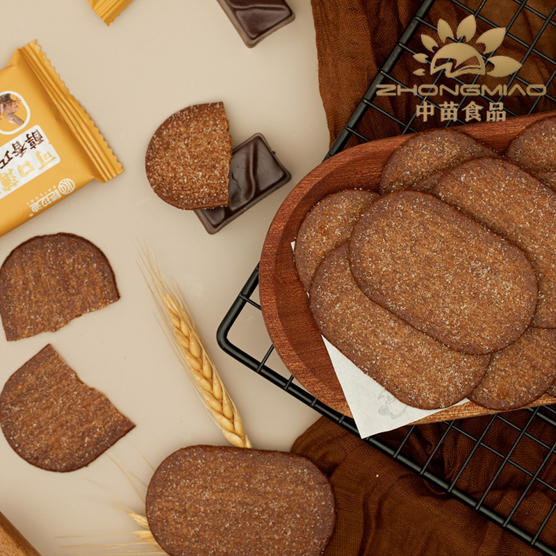 من حيث التفاصيل، يتم تصنيع البسكويت باستخدام عجينة عميقة مملوءة بالكاكاو، مما ينتج عنه لون بني غني وسطح مغطى ببلورات السكر الناعمة التي تضيف قرمشة خفيفة وجاذبية بصرية. يتم خبزها بسماكة دقيقة، مما يحافظ على هشاشة هشة تتكسر بلطف عند العض، مما يتجنب الجفاف الشائع في البسكويت الصلب العادي. تم دمج نكهة الشوكولاتة بعمق في العجينة، مما يضمن طعمًا ثابتًا وفاخرًا في كل قطعة دون أي مذاقات صناعية.