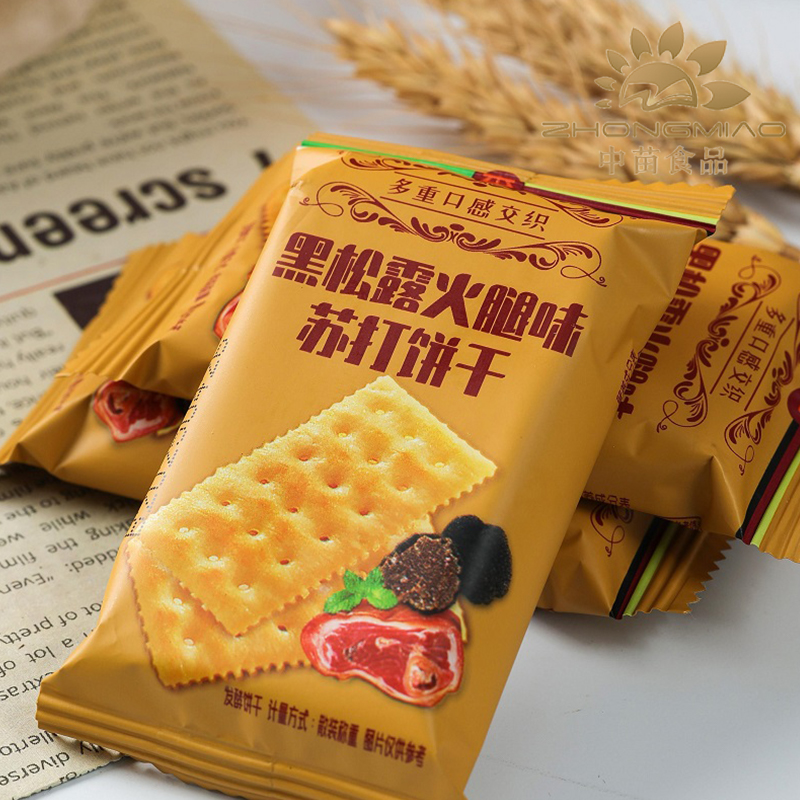 يتم خبز كل قطعة بسكويت إلى درجة الكمال الذهبي، مع وجود بقع مرئية من لحم الخنزير ومزيج الكمأة الخفيف الذي يعزز جاذبيتها البصرية والحسية. يضمن الشكل الرفيع والهش قضمة خفيفة وحساسة، بينما تتألق المكونات الفاخرة في كل فم. وباعتبارها نسخة راقية من مقرمشات الصودا، فإنها تحافظ على ملمس ونكهة متسقة، مع توابل دقيقة تتجنب التغلب على الحنك.